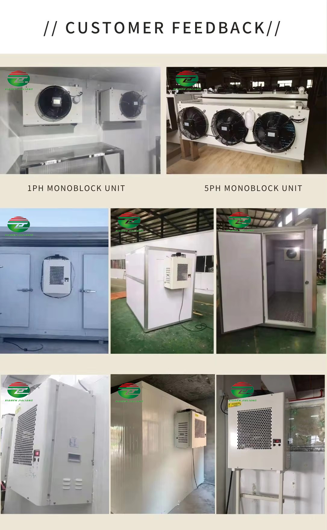 Xiamen Jialiang the leading cold room and refrigeration unit designer, manufacturer, and exporter dedicated to supplying the finest quality cold room solutions to worldwide customers.Our innovative, high-quality products and solutions include Cold Room,Evaporator, Condensing Unit, Cold Room Door, PU Panel, etc. We are willing to become your partners with our high cost-performance cold room, excellent quality, and perfect after-sale service.