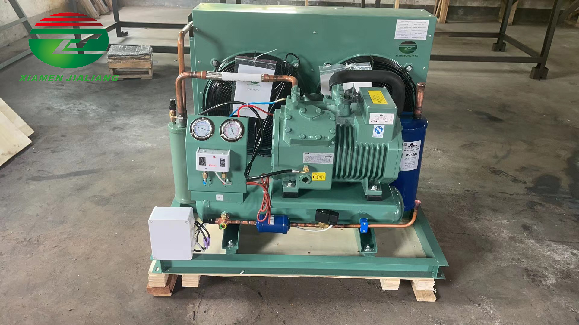 Jialiang Condensing unit is the optimized combination of efficiency, reliability, easy installation and sound performance. It is optimized designed and manufactured to reduce installation and maintenance costs, more efficient while making your production even more efficient and less noise impact for neighborhood.