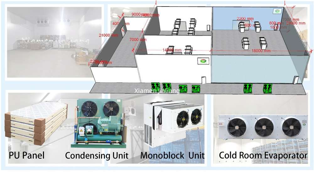 -15°C to -30°C Cold Room:cooling room Designed for low-temperature storage, this range is ideal for applications in cold chain logistics. It ensures products remain well-preserved during transit and storage, crucial for industries requiring stringent temperature control.