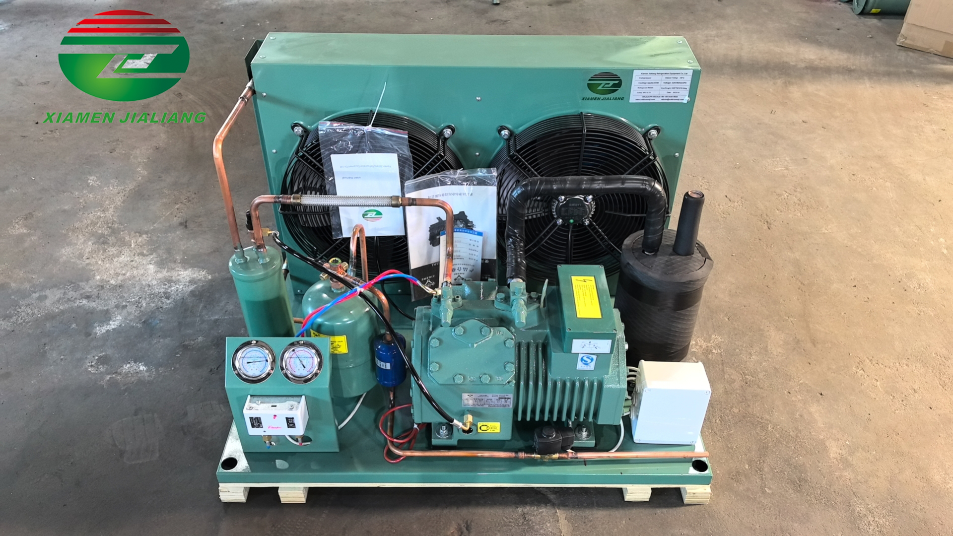 Jialiang Condensing unit is the optimized combination of efficiency, reliability, easy installation and sound performance. It is optimized designed and manufactured to reduce installation and maintenance costs, more efficient while making your production even more efficient and less noise impact for neighborhood.