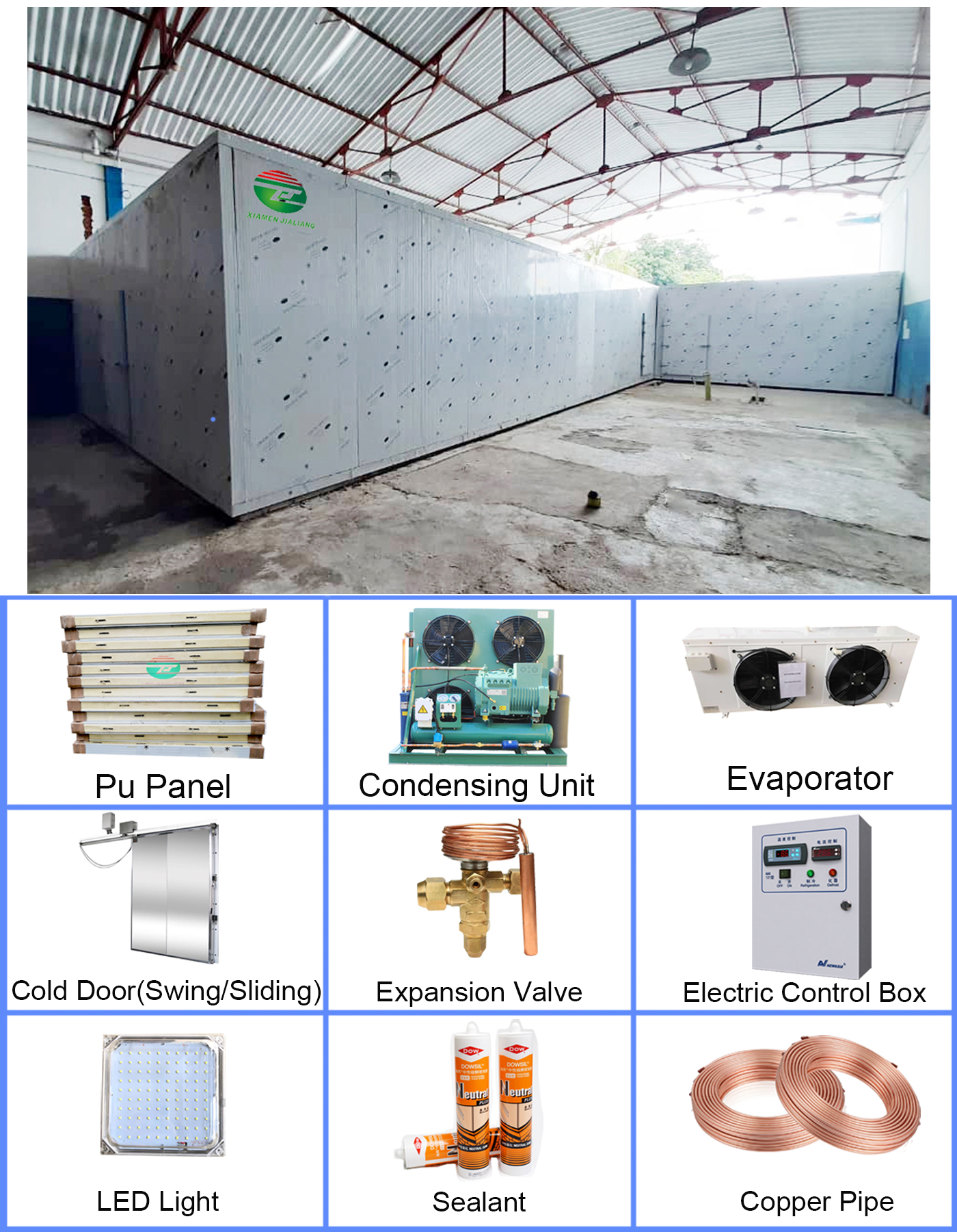 Cold room is divided into high temperature cold room,medium temperature cold room,low temperature cold room ,quick freezing room,which consists of panel,condensing unit,evaporator,door,electric control box,ect.