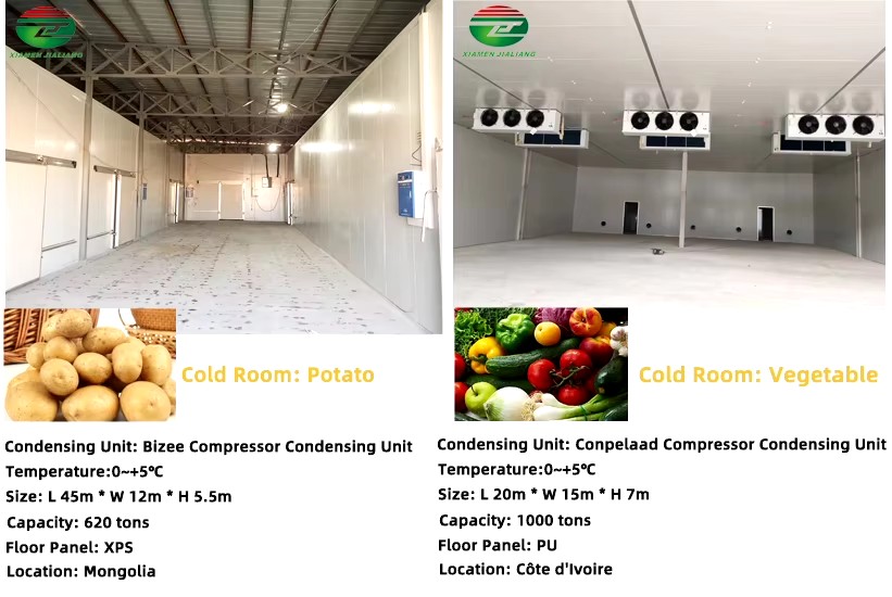 Jialiang has a variety of different types of cold storage to choose from. According to the temperature you need, the voltage of the project location, and the size of the cold storage, we can design the most suitable cold storage for you. The last thing you want is to invest in a freezer that isn't durable, doesn't fit your requirements, or costs more to repair!