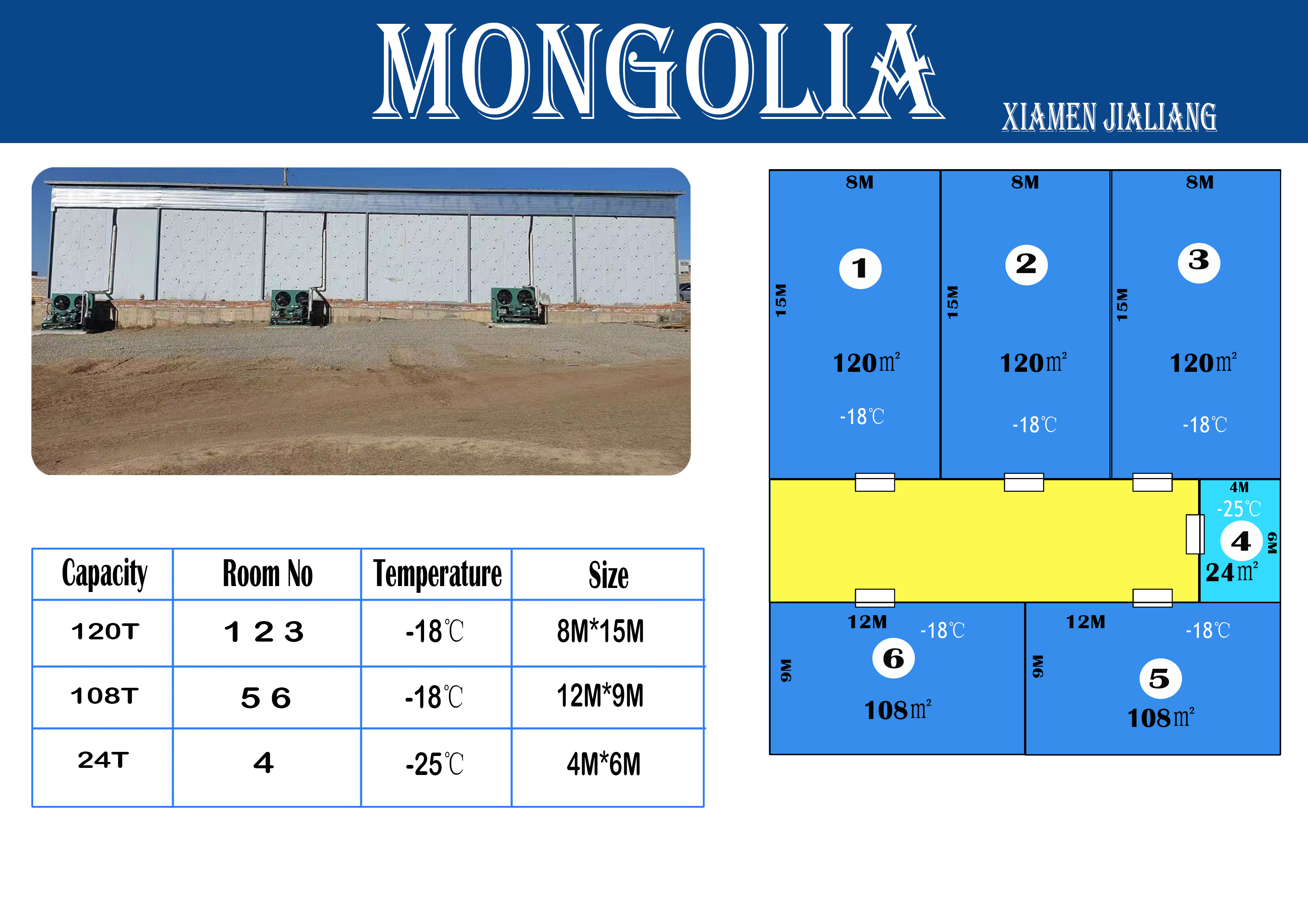 1. Temperature Range: The cold storage room is designed to maintain temperatures within the range of -15°C to -25°C.
