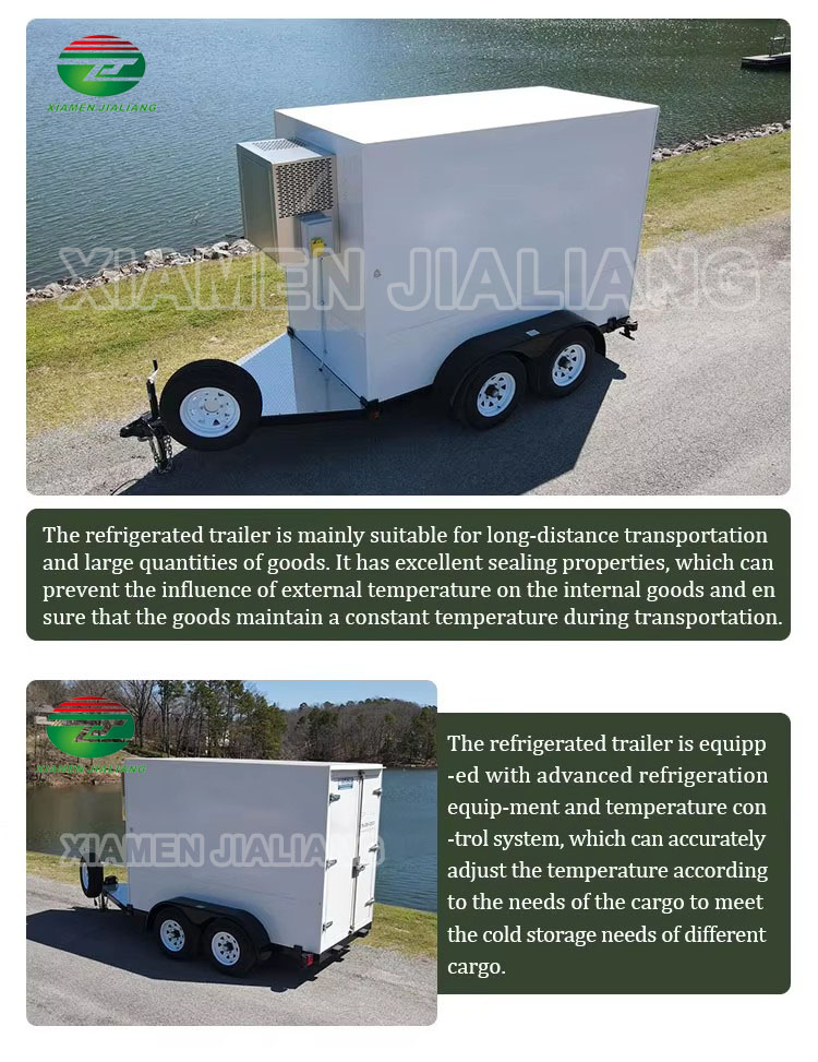 When it comes to transporting perishable goods, a Small Refrigerated Trailer is a must-have for businesses that require reliable cooling on the go. Xiamen Jialiang specializes in providing low-cost, high-performance refrigerated trailers designed for commercial applications. Our 8 ft. and 10 ft. Small Refrigerated Trailers are perfect for food distribution, catering, medical transport, floral deliveries, and much more.