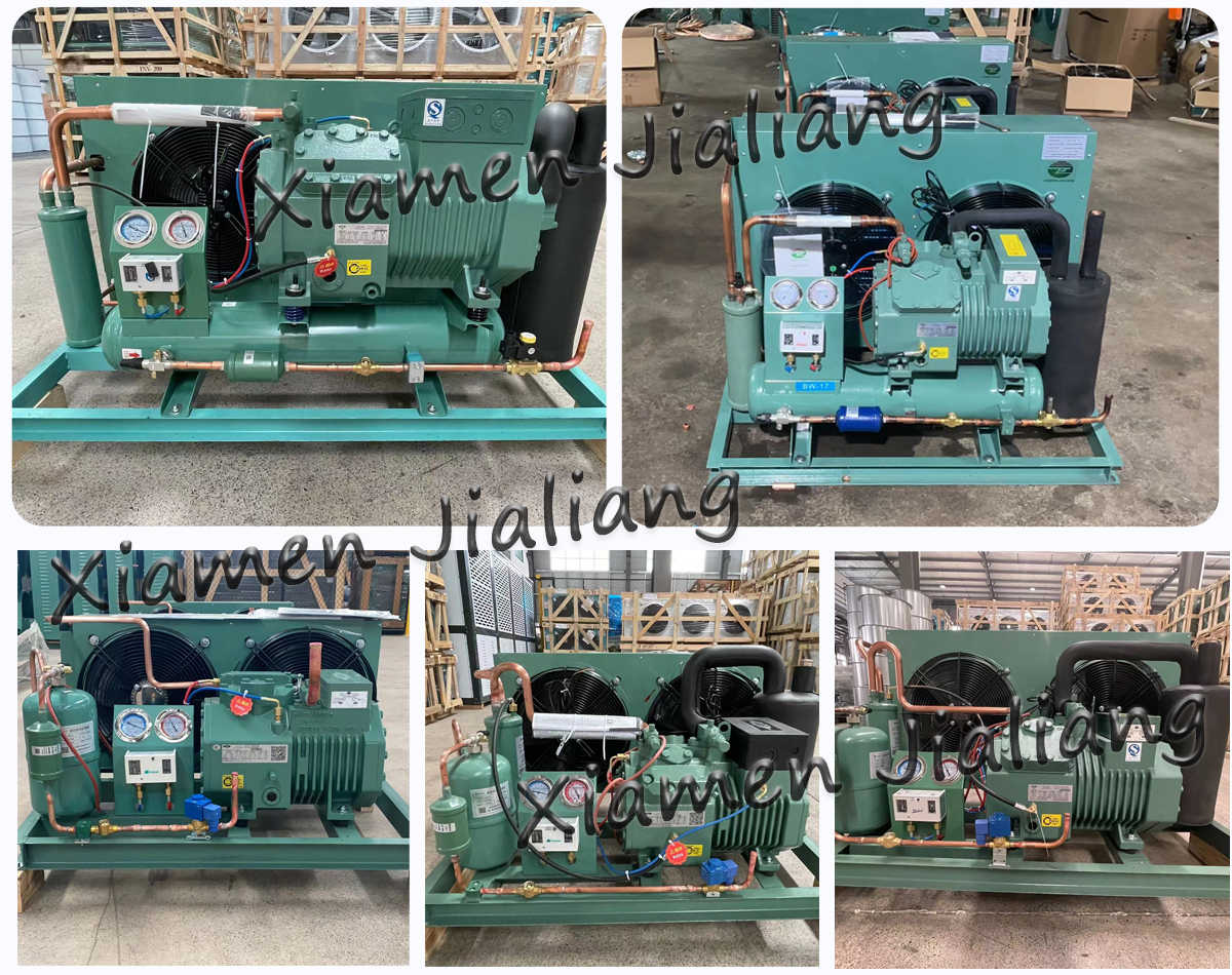 Condensing units play a crucial role in various cold room applications. In this series of condensing units, we primarily utilize semi-enclosed Bitzer compressors, copper tube aluminum sheet air-cooled condensers, and shell and tube condensers. Additionally, our air-cooled units incorporate external rotor fans, delivering not only high efficiency but also low noise levels.