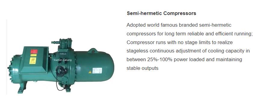 1.Xiamen Jialiang series screw compressor racks are assembled with original semi-hermetic screw compressors;