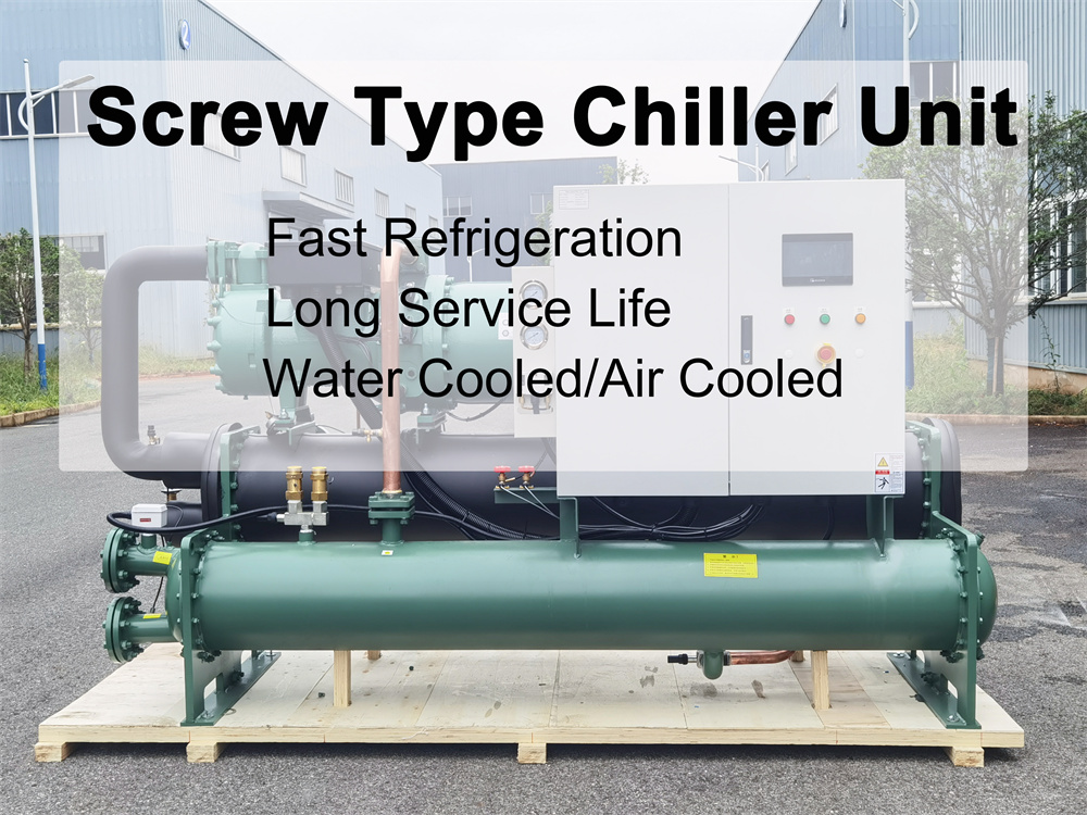 Screw chiller unit have the advantages of high efficiency, good performance, low noise, low vibration, energy conservation, high reliability, and long service life. According to customer needs and cold tonnage, single machine or multiple machine combinations are adopted. The compressor can automatically rotate alternately according to load changes, balancing the operating hours of each compressor, greatly extending the service life of the chiller.