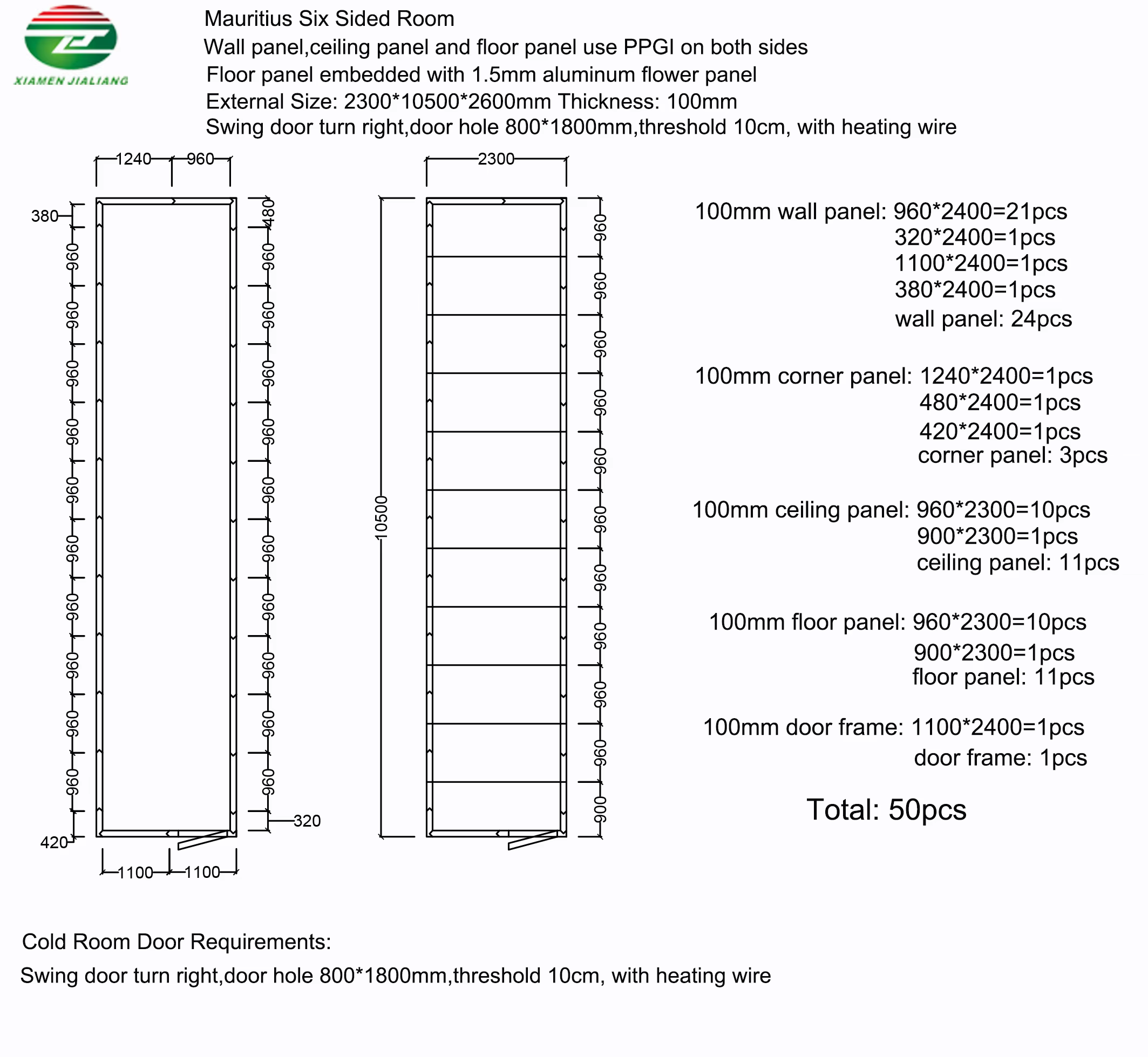 | PU Panel Thickness | 100mm |
