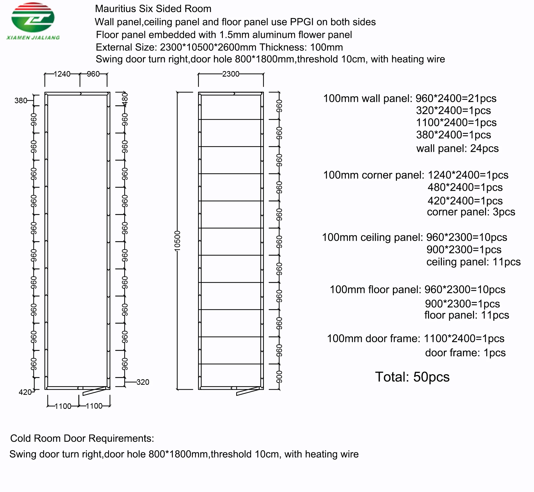 xiamen jialiang cold room consists of cold room panel (PU sandwich panel), cold room door, condensing unit,