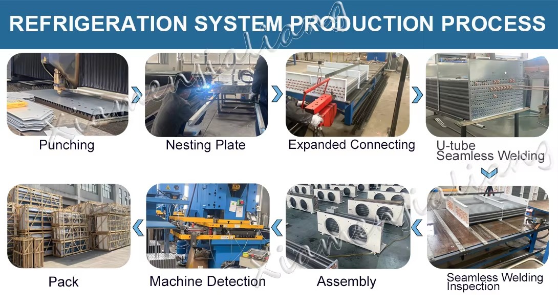We have our own production factory, which mainly produces products related to refrigeration equipment, such as cold room, cold room panels, condensing units, evaporators, etc