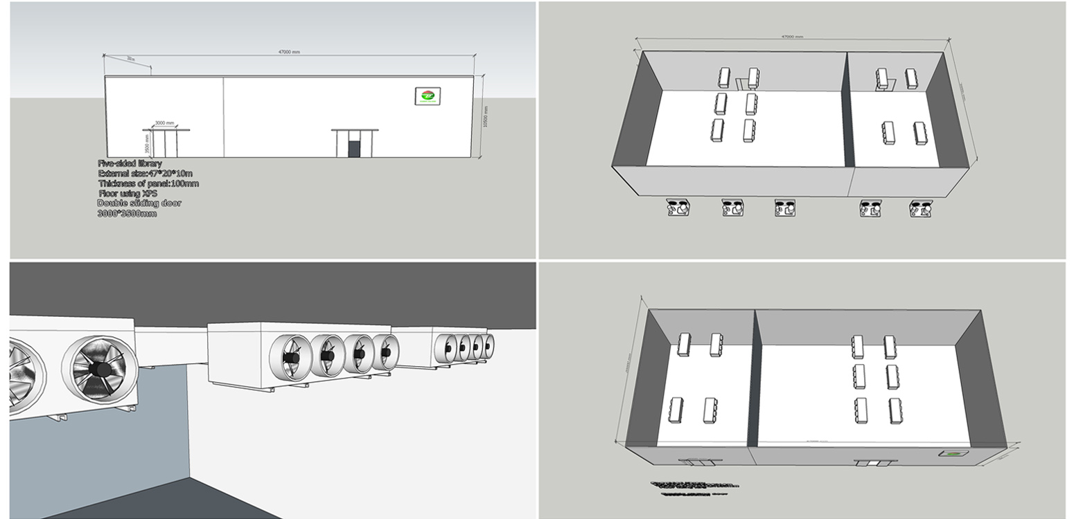 1. The distance between the back of the cooling fan in the cold storage and the cold storage insulation board should be at least 300MM, which is conducive to air circulation in the cold storage and facilitates future maintenance.