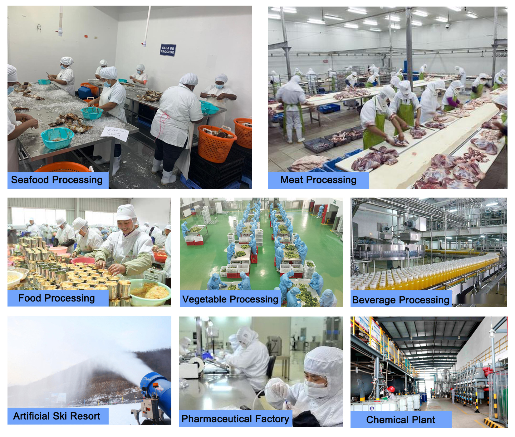 Versatile Usage: Ice making has diverse applications in laboratories, the medical field, chemical industry, and even artificial ski resorts, catering to a range of industrial needs.
