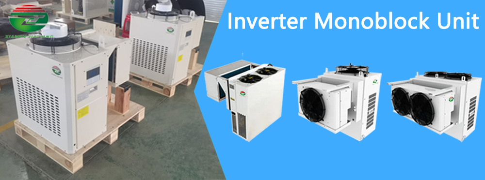 Inverter Monoblock Unit Main Feature Reduce cooling speed faster,small temperature fluctuation range; Efficient energy saving, reduce the system energy; Increase in compressors reliability thanks to the significant decrease of compressors startups; Low noise thanks to the extremely high system flexibility; Extremely low vibration phenomena.