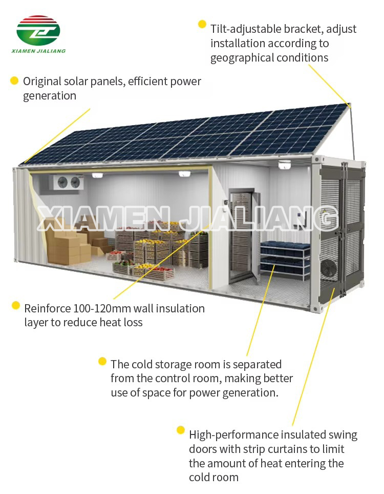 Solar cold storage is mainly used for constant temperature storage air conditioning equipment for food, dairy products, meat, aquatic products, chemical, pharmaceutical, breeding, scientific experiments, cold storage is actually a kind of low temperature refrigerator (freezer) also belongs to the refrigeration equipment and a refrigerator compared to the cooling area should be large, but they have communicated with the refrigeration principle.